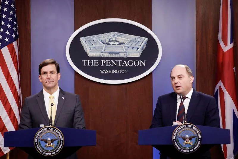 وزير الدفاع البريطاني بن والاس ونظيره الأميركي مارك إسبر في البنتاغون (أرشيفية - رويترز)