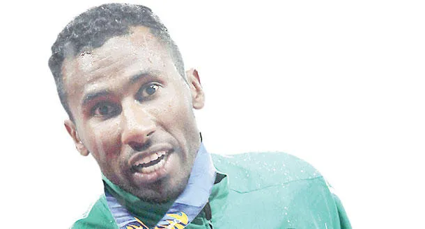 العداء يوسف مسرحي أثناء تتويجه بذهبية 400م في أولمبياد إنشون