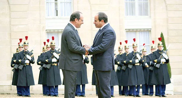 الرئيس الفرنسي فرنسوا هولاند لدى استقباله الرئيس عبد الفتاح السيسي («الشرق الأوسط»)