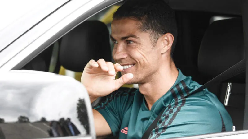 رونالدو في طريقه للانضمام إلى تدريبات يوفنتوس (أ.ب)