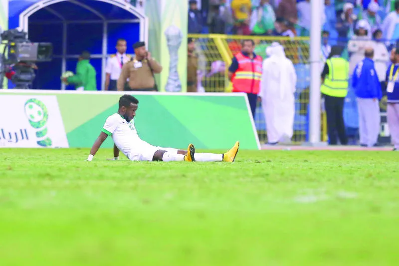 الحسرة بادية على لاعب المنتخب السعودي فهد المولد بعد خسارة نهائي «خليجي22» (تصوير: علي العريفي)