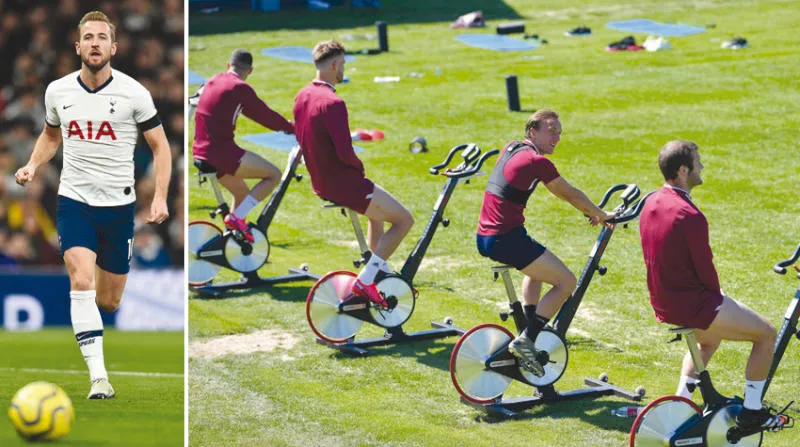 لاعبو وستهام يتبعون القواعد الصحية خلال التدريب قبل استئناف الدوري (غيتي) - هاري كين نجم توتنهام استفاد من فترة التوقف للتعافي من الإصابة (أ.ف.ب)