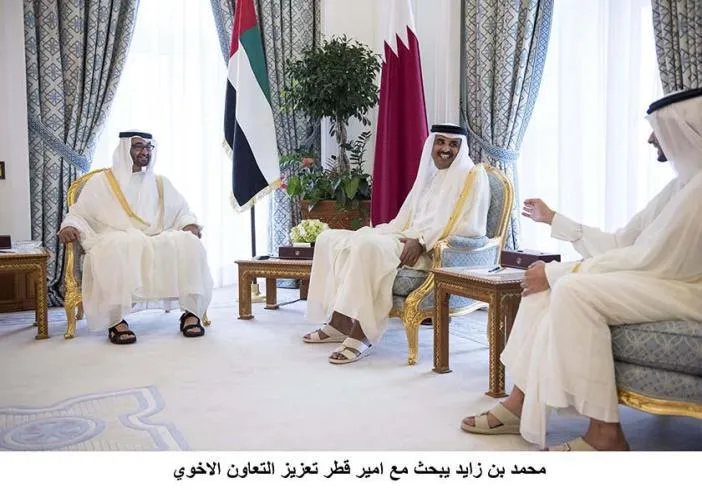 وذكرت مصادر مطلعة أن الزيارة تأتي لتأكيد المصالحة بين دول مجلس التعاون، الذي أنهى الخلاف الخليجي الذي دام 8 أشهر، حيث كان للشيخ محمد بن زايد دور بناء في قمة الرياض الأخيرة، لإنهاء ذلك الاختلاف الذي وجد التوافق عليه من قبل الشيخ تميم بن حمد آل ثاني أمير قطر في قمة الرياض الأخيرة.