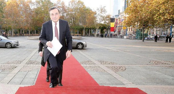 رئيس البنك المركزي الأوروبي ماريو دراغي متوجها لـ«المؤتمر الأوروبي للصيرفة} (أ.ب)