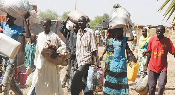 صورة وزعت أمس لمدنيين فارين من منازلهم إثر هجوم لمقاتلين يعتقد أنهم تابعون لبوكو حرام في منطقة يولا بنيجيريا (أ.ب)