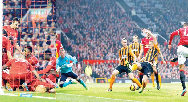 على استاد «أولد ترافورد»، أكد مانشستر يونايتد انتفاضته وعودته القوة لدائرة المنافسة على المراكز الأولى، وسحق ضيفه هال سيتي بثلاثة أهداف أحرزها كريس سمولينغ وواين روني والهولندي روبن فان بيرسي في الدقائق 16 و42 و66، ليرفع مانشستر رصيده إلى 22 نقطة في المركز الرابع، ويتجمد رصيد هال سيتي عند 11 نقطة بعدما مني بالهزيمة الرابعة على التوالي. وأفلت ليفربول من كمين ضيفه ستوك سيتي بفوز صعب ومتأخر 1/صفر، ليكون الفوز الأول له بعد ثلاث هزائم متتالية. وانتهى الشوط الأول من المباراة بالتعادل السلبي، ثم سجل جلين جونسون الهدف الوحيد للمباراة في الدقيقة 85 ليرفع ليفربول رصيده إلى 17 نقطة ويتجمد رصيد ستوك سيتي عند 15 نقطة بعدما مني بالهزيمة الثانية على التوالي.