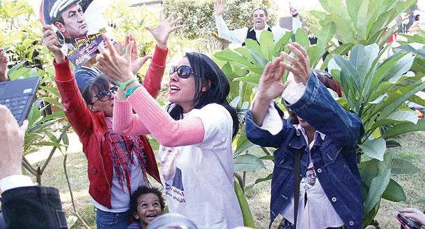 أنصار الرئيس الأسبق يرقصون خارج المحكمة عقب حكم البراءة (أ.ب)