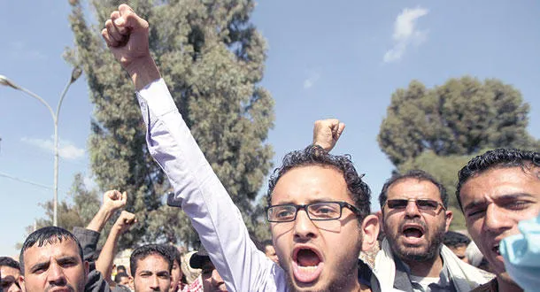 يمنيون يتظاهرون ضد الحوثيين في وسط العاصمة صنعاء أمس (رويترز)