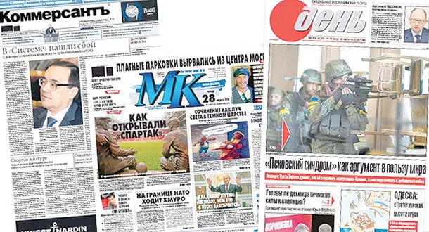 مقابل كل صحيفة تشدو في عشق بوتين، هناك صحيفتان على الأقل تتبعان نهجا متشككا حيال إنجازاته المزعومة، أو تعدانه مصدر خطر لنفسه وروسيا والعالم. وخلال الأيام القليلة الماضية، طالعت مقالات بعناوين مثل «روسيا تلعب بالنار»، والذي يتناول سياسات بوتين الاستفزازية، و«على بوتين التوقف عن دعم انفصاليي أوكرانيا».