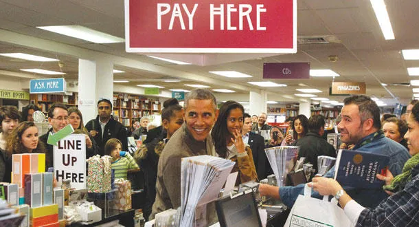 زار الرئيس الأميركي باراك أوباما وابنتاه ساشا وماليا، السبت الماضي، متجرا مستقلا لبيع الكتب في واشنطن للشراء، في لفتة لتشجيع المشروعات الصغيرة. وسأل الرئيس مازحا أثناء إفراغ سلة مشترياته من مجموعة من الكتب في متجر بوليتيكس آند بروس: «هل سأحصل على خصم على هذا؟».