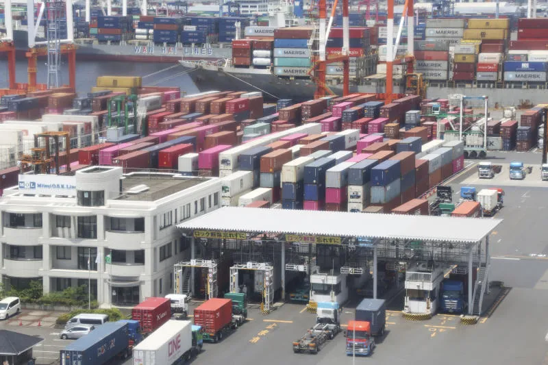 حاويات مكدّسة في مرفأ يوكوهاما جنوب طوكيو (أ.ب)