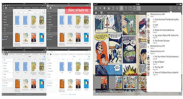 ويدعم التطبيق عرض الوثائق التي تتكون من الصور (مثل المجلات المصورة للرسوم الكارتونية) والوثائق النصية، مع القدرة على تغيير ألوان واجهة الاستخدام وأشكال الأيقونات المستخدمة، ويستطيع التطبيق عرض أكثر من كتاب رقمي في آن واحد، وعرض صفحة واحدة على الشاشة أو اثنتين، وغير ذلك من الخيارات الأخرى، بالإضافة إلى دعم معيار UTF - 8 لتخزين النصوص، الأمر الذي يعني أنه يدعم عرض الوثائق باللغة العربية. ويسمح التطبيق كذلك بترتيب الكتب الرقمية وفقا لفئاتها، مثل المجلات المصورة والنصية والروايات، مع القدرة على إضافة أي فئة جديدة وتعديلها وفقا لرغبة المستخدم. ويبلغ سعر التطبيق الكامل 7.99 دولار أميركي، مع توفير إصدار مبسط بسعر 4.99 دولار أميركي (لا يدعم الاتصال بخدمات التخزين السحابي أو تغيير ألوان واجهة الاستخدام وترتيب الملفات، بالإضافة إلى تقديم إصدار مجاني محدود المزايا للتجربة). ويمكن تحميل التطبيق من متجر «آي تونز» الإلكتروني.