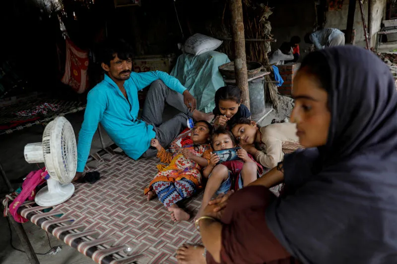 عائلة باكستانية بمخيم للنازحين في نيودلهي (رويترز)