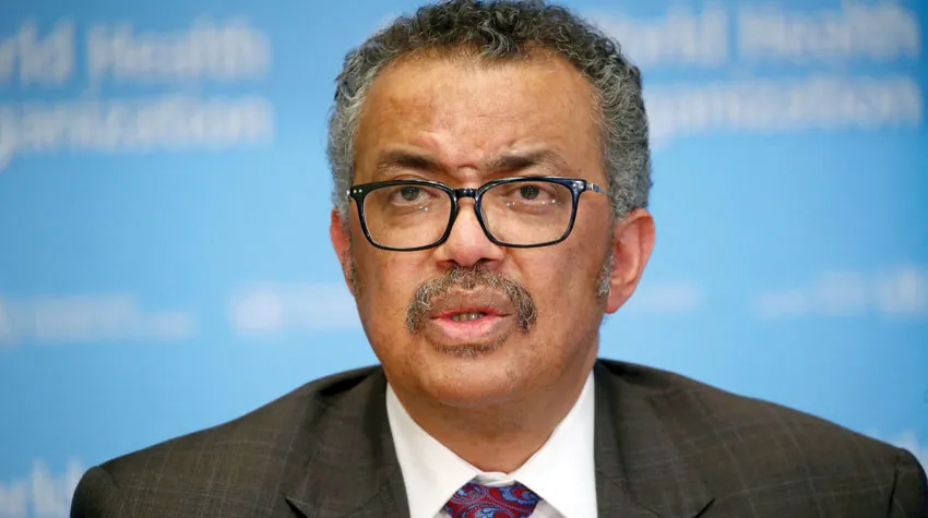 مدير عام منظمة الصحة يتحدث خلال مؤتمر صحافي سابق حول «كورونا» (رويترز)