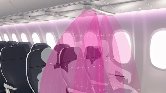 وعادة، تتم تغذية الهواء على متن طائرة ركاب من خلال الجزء العلوي من المقصورة ثم يتم استخراجه عن طريق فتحات أرضية ليتم تغذيته من خلال مرشحات امتصاص الجسيمات عالية الكفاءة (هيبا) التي تأخذ 99.9 في المائة من المحتوى الميكروبي.