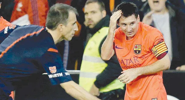 انتزع برشلونة الفوز 1 - صفر على ملعب فالنسيا في اللحظات الأخيرة من مباراتهما بالدوري الإسباني وبهدف سجله سيرجيو بوسكيتس وأثناء الاحتفال بالهدف ألقى مشجع بزجاجة بلاستيكية على رأس الأرجنتيني ليونيل ميسي لكن الأخير نال إنذارا لتأخره في النهوض ظنا من الحكم أنه يهدر الوقت.