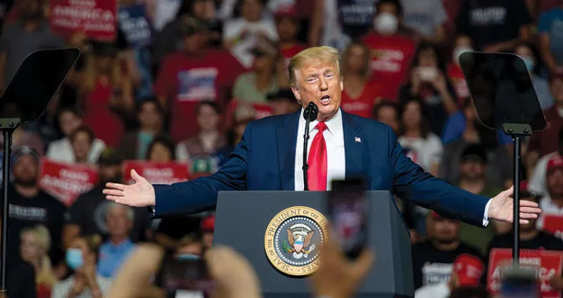 ركّز الرئيس الأميركي دونالد ترمب في أول تجمع انتخابي له منذ 3 أشهر في تولسا بولاية أوكلاهوما مساء أول من أمس على مهاجمة جو بايدن، خصمه في الانتخابات الرئاسية المقررة في نوفمبر (تشرين الثاني) المقبل، مشككاً في قدراته الذهنية. وقلّل ترمب من وباء «كوفيد - 19»، مصراً على وصفه بأنه الفيروس الصيني، وتفاخر بأنه قام بعمل استثنائي في مكافحة الوباء، واعترف بأن زيادة الاختبارات للفيروس كشفت عن مزيد من حالات العدوى التي جعلت الولايات المتحدة تبدو سيئة.