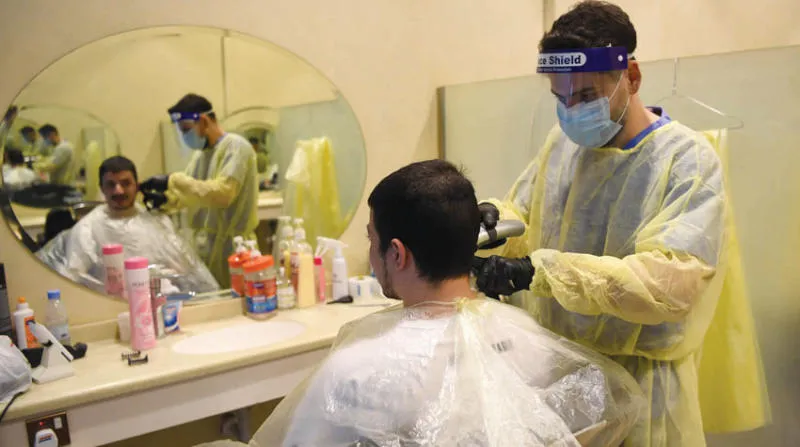 إجراءات وقائية في أحد صوالين الحلاقة الرجالية السعودية (تصوير: بشير صالح)