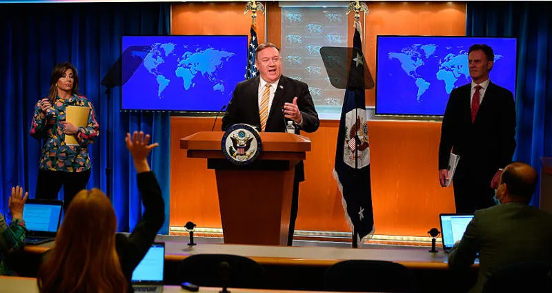 وزير الخارجية الأميركي مايك بومبيو خلال مؤتمر صحافي في واشنطن أمس (أ.ب)