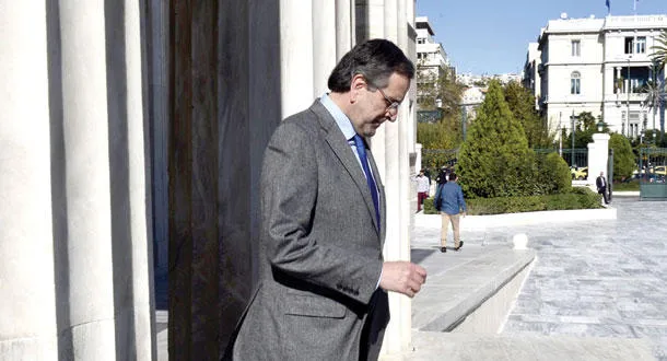 رئيس الوزراء اليوناني إندونيس ساماراس يغادر البرلمان في العاصمة أثينا (أ.ف.ب)