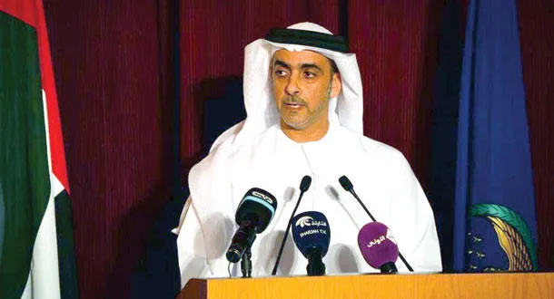 وزير الداخلية الإماراتي الشيخ سيف بن زايد خلال المؤتمر الصحافي في أبوظبي أمس (وام)
