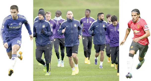 فالكاو.. قوة ضاربة في هجوم يونايتد - سيتي يسعى لإضافة 3 نقاط جديدة إلى رصيده لمواصلة تضييق الخناق على تشيلسي (أ.ف.ب) - هازارد.. تألق مستمر مع تشيلسي (أ.ف.ب)