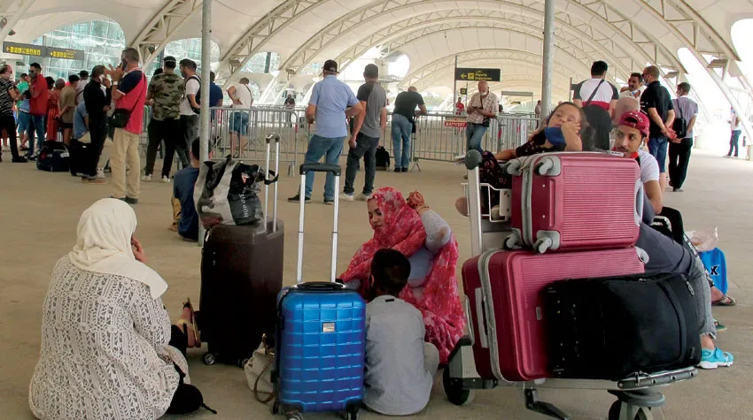 مسافرون ينتظرون موعد إقلاع طائرتهم في مطار هواري بومدين بالعاصمة الجزائرية يوم الأربعاء الماضي (أ.ب)