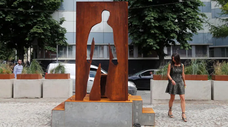 النصب التذكاري الذي أزيح عنه الستار في موسكو يوم الجمعة (رويترز)
