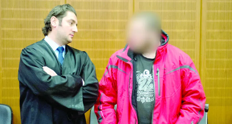أول متهم ألماني قاتل في صفوف « داعش» (يمين) بجانب محاميه في قاعة محكمة فرانكفورت قبل صدور الحكم بحبسه 3 سنوات أمس (إ.ب.أ)