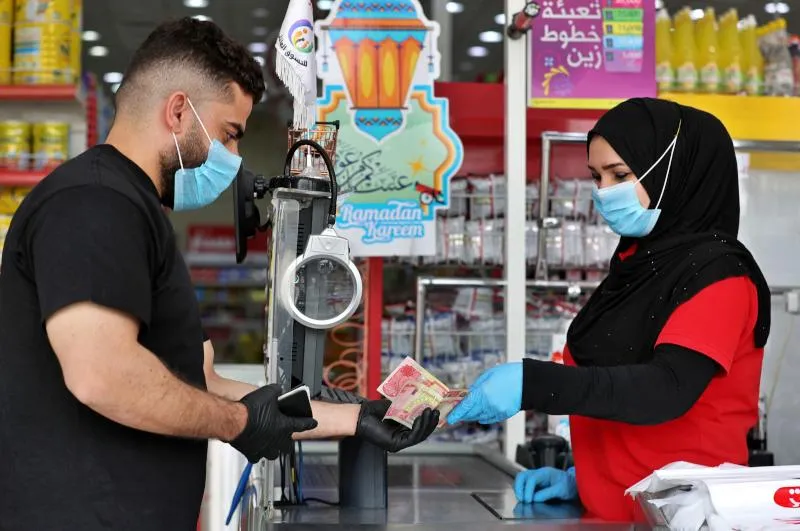 رجل يشتري احتياجاته بمركز تجاري في البصرة (أ.ب)