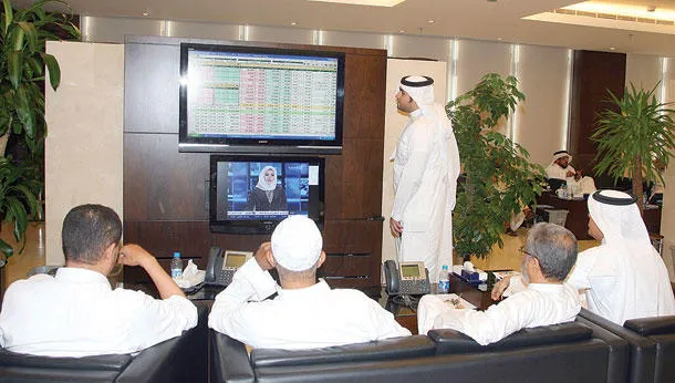 متداولون في إحدى صالات الأسهم في مدينة جدة («الشرق الأوسط»)