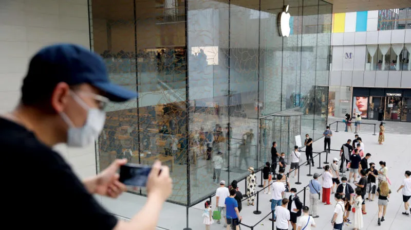 افتتحت «أبل» أمس أكبر متاجرها في الصين وسط إقبال بالغ (إ.ب.أ)