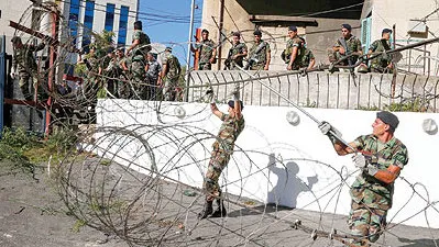جنود لبنانيون يغلقون الشوارع المؤدية إلى السفارة الأميركية في عوكر شمال بيروت (رويترز)