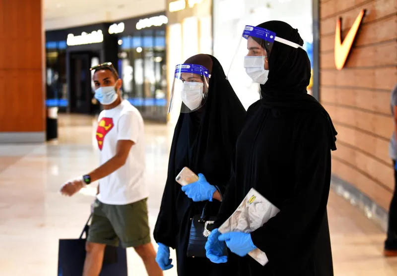 أشخاص يرتدون أقنعة واقية في مركز تسوق بمدينة الكويت (إ.ب.أ)