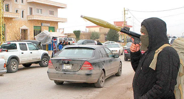رجل مسلح أمام قرية البزالية التي ينتمي لها العسكري اللبناني الذي أعدمته جبهة النصرة قبل أيام مما تسبب في تجميد الوساطة مع الخاطفين (رويترز)