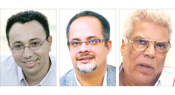 الروائي إبراهيم عبد المجيد صاحب دار «بيت الياسمين» و الكاتب والمترجم طاهر البربري صاحب دار «أرابيسك» و الشاعر فارس خضر صاحب دار «الأدهم»