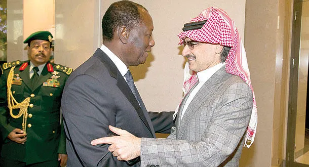 وكان الأمير الوليد بن طلال قد التقى - أخيرا - رئيس جمهورية ساحل العاج على هامش زيارة المنظمة الدولية الفرانكفونية خلال رحلته لجمهورية السنغال لحضور قمة المنظمة الدولية الفرانكفونية الخامسة عشرة في المركز الدولي للمؤتمرات في مدينة داكار، وذلك تلبية لدعوة من ماكي سال رئيس السنغال.