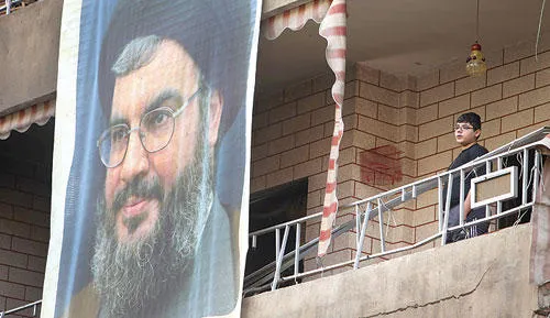 صورة كبيرة لحسن نصر الله في الضاحية الجنوبية لبيروت (أ.ب)
