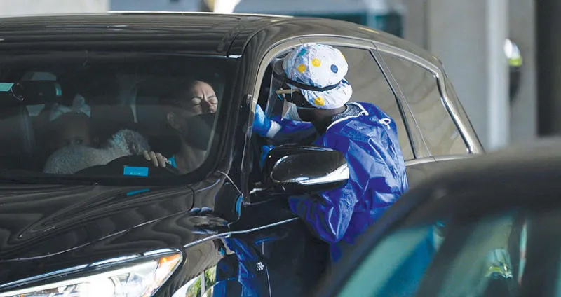 محطة فحص «كورونا» مؤقتة في سانت بيترسبرغ بفلوريدا (أ.ف.ب)