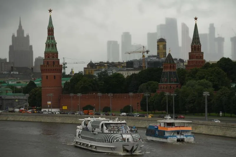 قوارب تمر بنهر موسكفا أمام الكرملين (أرشيفية - أ.ف.ب)