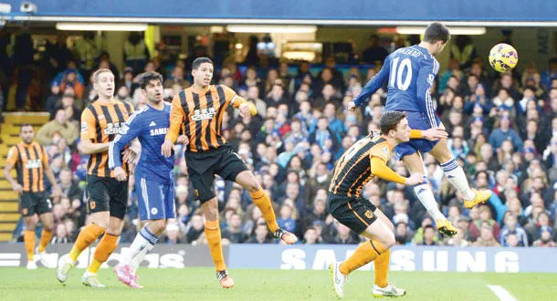 هازارد (10) يضع تشيلسي في المقدمة برأسية قوية (إ.ب.أ)