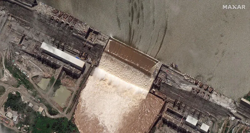 سد النهضة كما يبدو في صورة التقطت بواسطة الأقمار الصناعية في 20 يوليو الماضي (أ.ب)