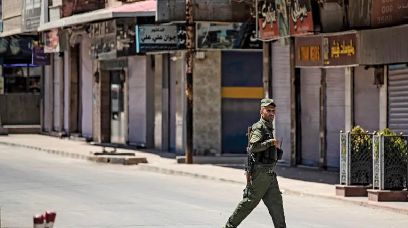 عنصر من «قوات سوريا الديمقراطية» في القامشلي شرق الفرات امس (أ.ف.ب)
