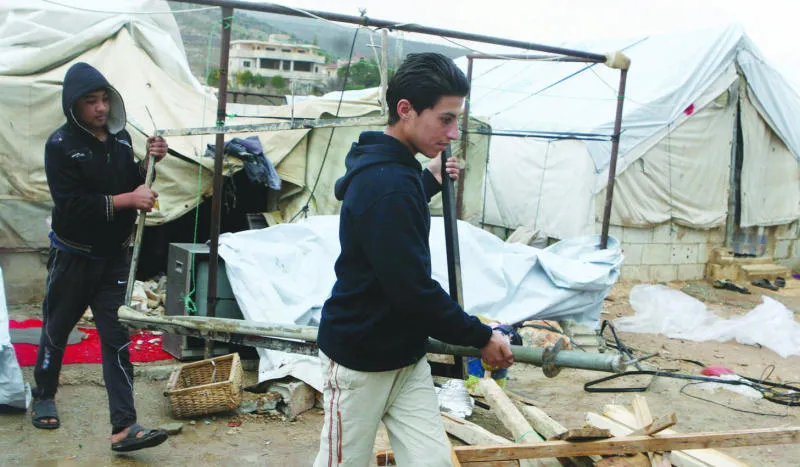 لاجئون سوريون في البقاع اللبناني يفككون خيامهم غير النظامية بعد أن منحتهم الدولة اللبنانية فرصة حتى نهاية الشهر لنزعها (رويترز)