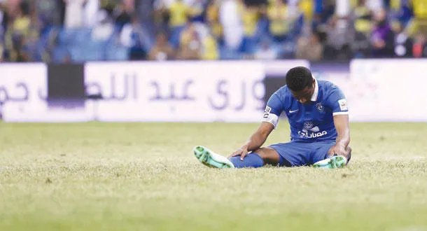 ناصر الشمراني محبطا بعد إضاعته لإحدى الهجمات في مباراة فريقه أمام النصر أمس الأول (تصوير: علي العريفي)