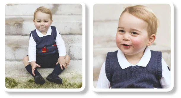 وزع دوق ودوقة كمبردج السبت 3 صور لابنهما الأمير جورج (عام واحد) في فناء قصر كنسغتون. التقطت الصور أواخر شهر نوفمبر (تشرين الثاني) ويظهر فيها الأمير وهو جالس على الدرج في الفناء.
