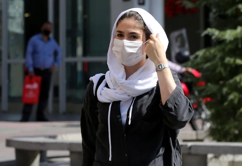 سيدة إيرانية ترتدي قناعاً للوجه وتسير في أحد شوارع طهران (إ.ب.أ)