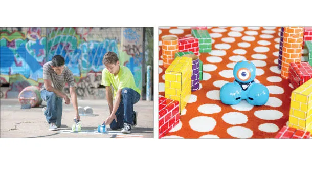 * و«داش آند دوت» Dash and Dot يجري التحكم فيهما عبر تطبيق على جهاز جوال، ويمكن تعليمهما استيعاب الأحداث التي تجري يوميا والتي تحصل في العالم الفعلي والتفاعل معها، مثل عزف لحن حقيقي على آلة موسيقية مثلا، أو النباح ردا على تصفيق الطفل.
