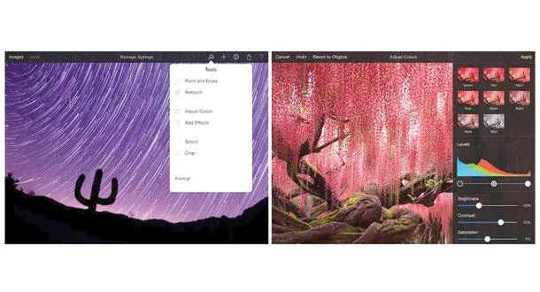 * ويسمح تطبيق «بيكسلميتر» Pixelmator على أجهزة «آي باد» تصحيح ألوان الصور والرسم فوقها وتحريرها بطرق مختلفة ودمجها مع بعضها البعض وإضافة طبقات مختلفة من المؤثرات البصرية والأشكال والنصوص إلى الصور بكل سهولة وفعالية. التطبيق سريع للاستخدام وواجهة الاستخدام ذكية ومريحة لدى الاستخدام وتقدم الأدوات التي يحتاجها المستخدم للحصول على نتائج مبهرة. ويدعم التطبيق التعامل مع الصور بدقة تصل إلى 16 ميغابيكسل، ويمكن الاختيار من بين 38 قالبا مسبق الإعداد للرسم وإضافة المؤثرات إلى الصور، والتي تقدم أطرا وبطاقات ومؤثرات مختلفة. ويمكن استخدام صور من ألبوم المستخدم أو من خدمات التخزين السحابية، مثل «آي كلاود». ولدى اختيار منطقة من صورة ما، ستظهر أبعاد تلك المنطقة ليعرف المستخدم الأبعاد النهائية للصورة التي يرغب بالحصول عليها. ويمكن إضافة المؤثرات الخاصة إلى الصورة ككل، أو إلى جزء من الصورة، وبكل سهولة، واختيار منطقة وفقا للون، وغيرها. ويقدم التطبيق نصائح حول كيفية استخدام الأدوات، ويبلغ سعره 5 دولارات أميركية، ويمكن تحميله من متجر «آي تونز» الإلكتروني.