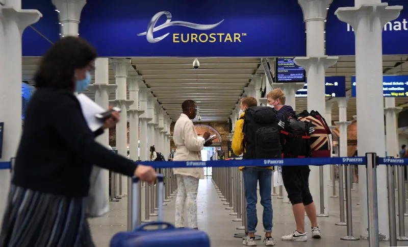 مسافرون في محطة سانت بانكراس للقطارات في لندن (إ.ب.أ)